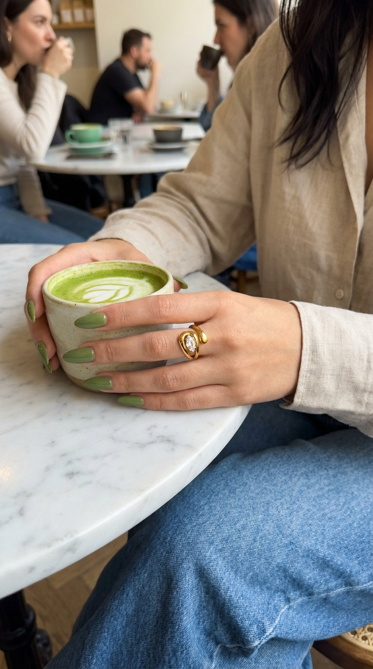 Der 14K-vergoldete Ring VICTORIA überzeugt mit seiner markanten, ineinandergreifenden Form und fein schimmernden Zirkonia-Steinen. Ein Design mit Tiefe und Struktur – modern, elegant und selbstbewusst. Ein vielseitiges Statement für jeden Tag oder besondere Anlässe.